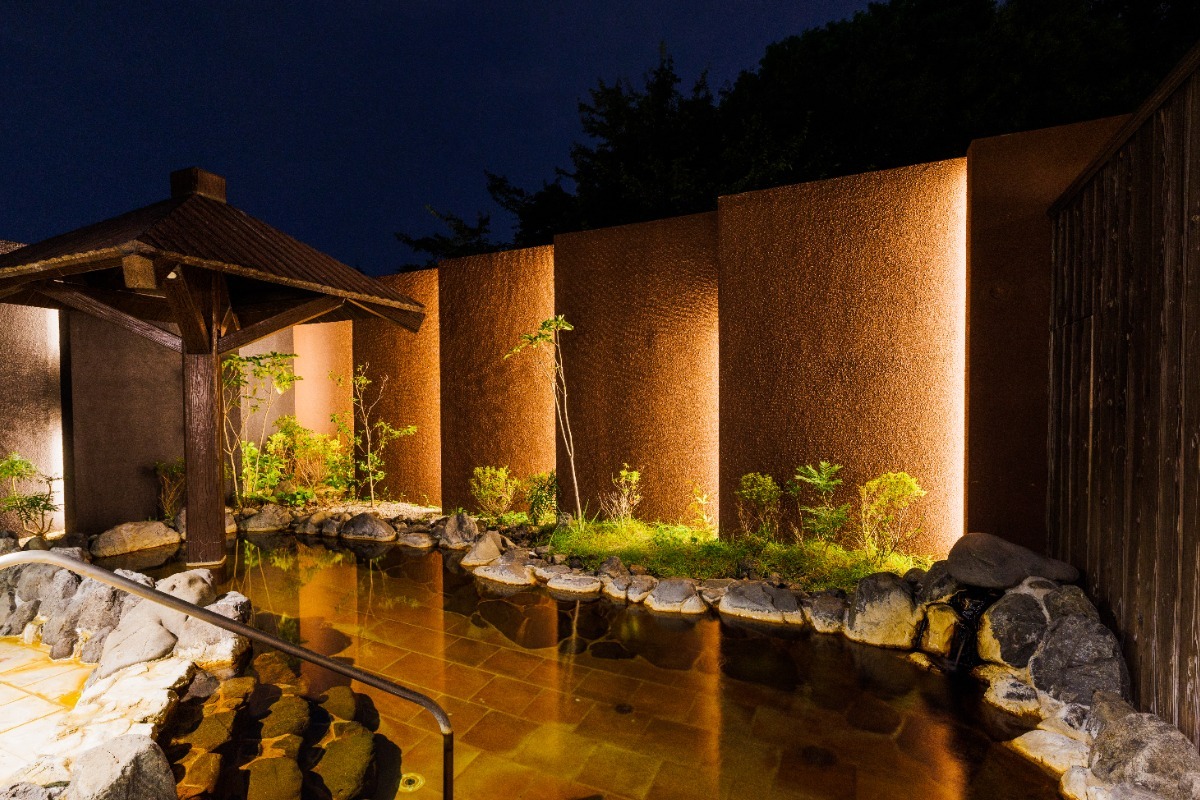 源泉かけ流しの天然温泉では、古都奈良をイメージした焼き杉材の内装の内風呂、ゆったり空を見上げながら入れる開放的な露天風呂を堪能できる。