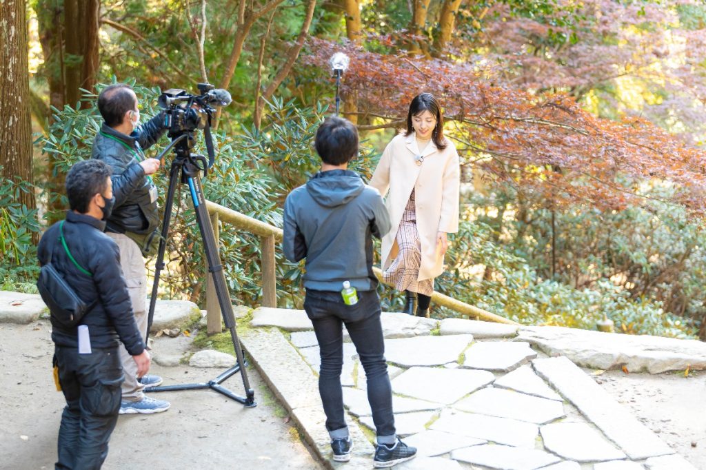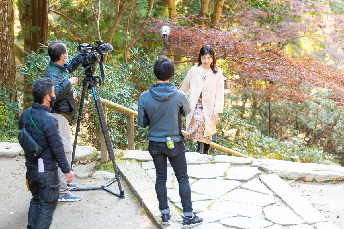 そんな宇陀市の観光プロモーション動画が昨年から株式会社アンカーによって制作されており、奈良県出身の女性タレント、松井絵里奈さんも出演するなど完成が待たれていたが、ついに完成の日を迎えた。ドローンや360°カメラを使った最先端の映像技術を駆使しての撮影ロケは前回もご紹介した通りだが、中でも、晴れてる寒い冬の早朝に様々な条件が揃わないと遭遇できない「かぎろひ」の撮影に成功したことは株式会社アンカーの努力の賜物であり、神秘的なスポットが多く存在する地域ならではの神様からのプレゼントと言っても過言ではない。