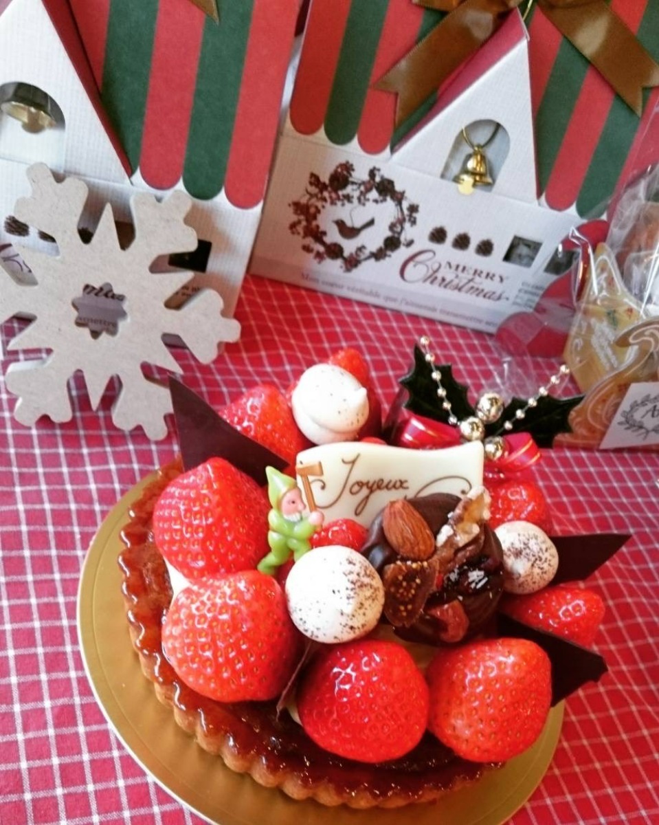 タルトの上にイチゴがたっぷりと乗ったクリスマスケーキ!