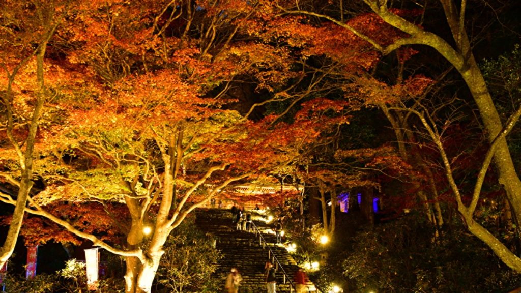 紅葉期には期間限定で夜間ライトアップが行われ、古刹の幻想的な光景に毎年多くの参拝者が魅了されている。