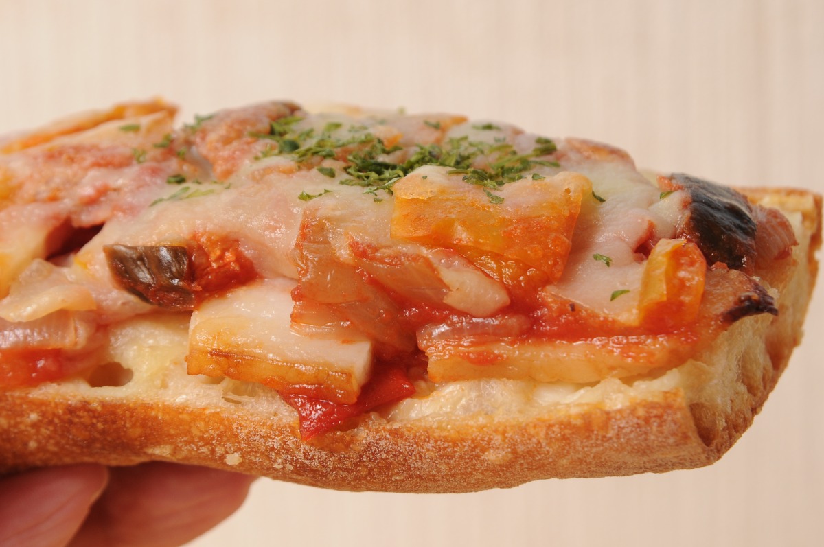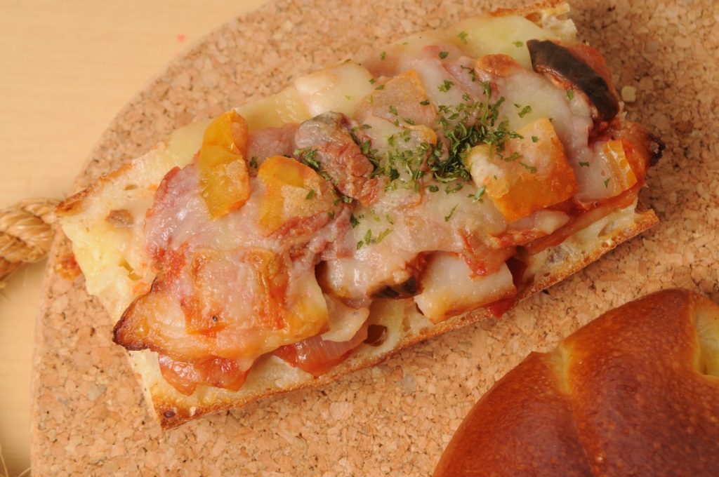 トマトの酸味とイベリコ豚ベーコンの旨味、そしてチーズのコクが、小麦の香りが心地よいバゲットとの相性抜群!
