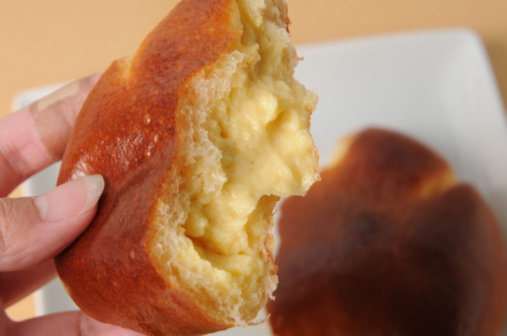 外の皮はパリッと硬め、でも中はふわふわ生地となめらかクリームのギャップがやみつきに。