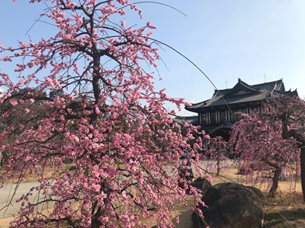 櫓の外のしだれ梅も咲きそろうと、一層、春の息吹を感じられる。