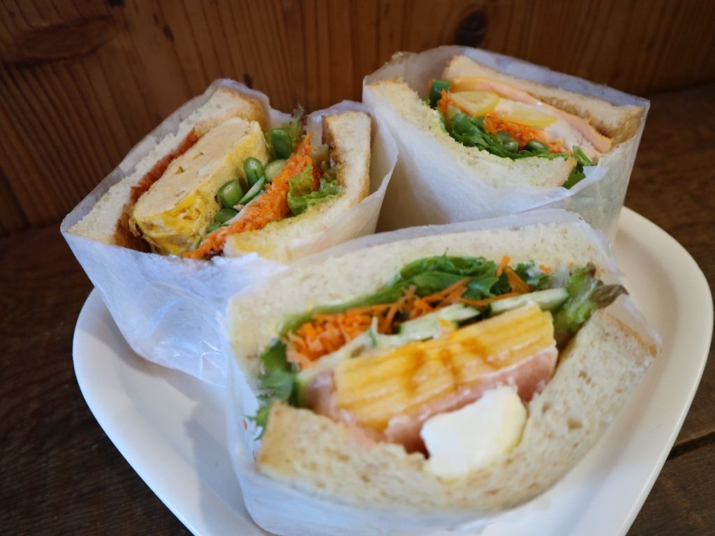 サンドイッチは野菜とタンパク質をバランス良く取ってもらいたいとメニューを考案。季節を感じさせる旬の野菜やフルーツをサンドする。