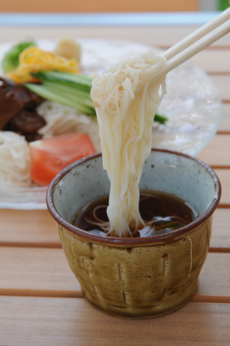江戸時代に、郡山城藩主の柳沢家から徳川家へと献上されていたとされる三輪そうめん。
