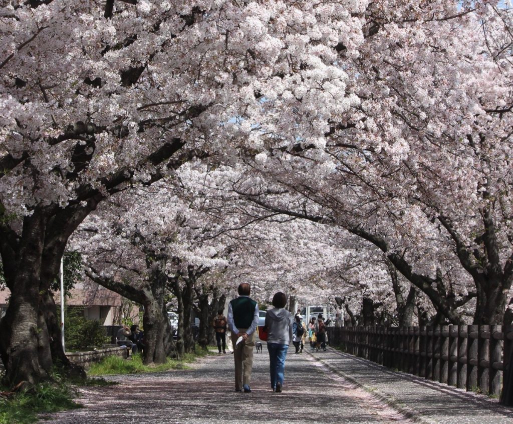 川沿いの遊歩道の桜のトンネルを、あたたかい日差しをたっぷり浴びながら、のんびり散策する気持ちよさは格別。