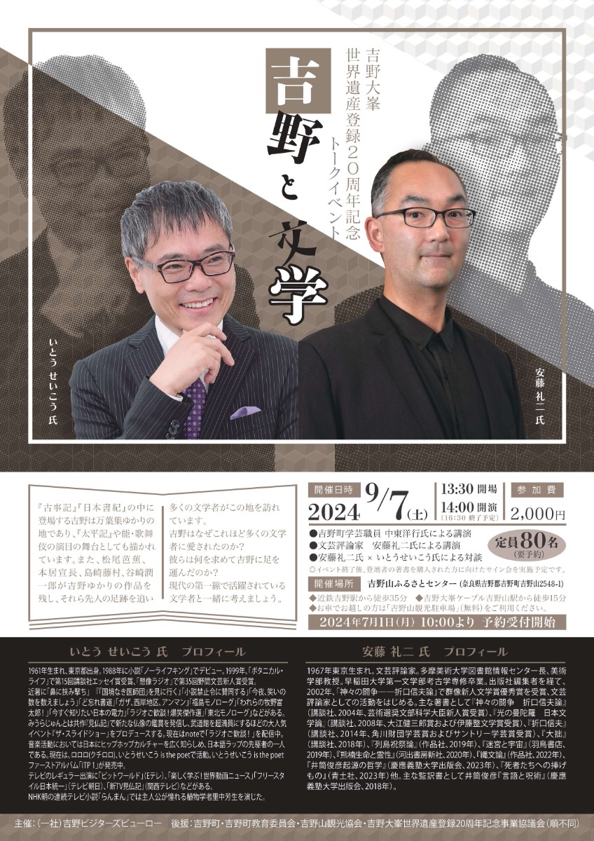 【吉野大峯世界遺産登録20周年記念】 「吉野と文学」トークイベント