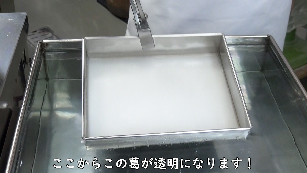 『中井春風堂』では、葛粉から葛切りまたは葛餅が出来るまでを実演してくれる。