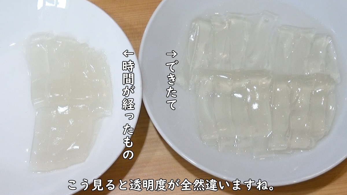 10分ほど経つと白くなり、弾力がないものになってしまう。