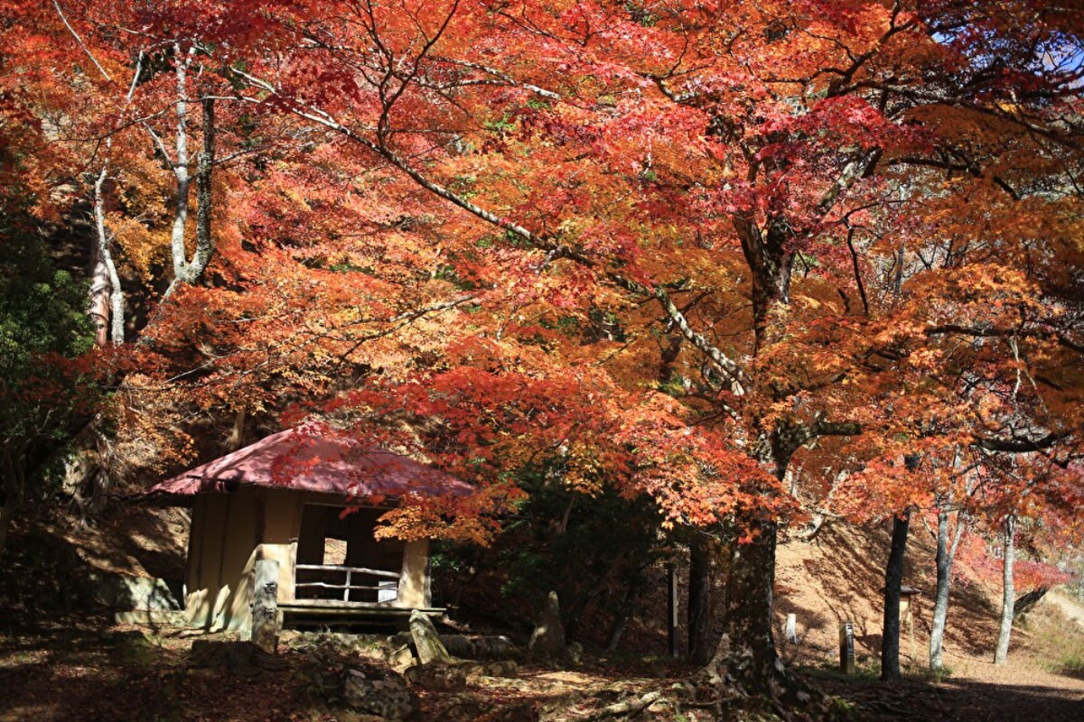 西行庵 紅葉の中にひっそりとたたずむ庵