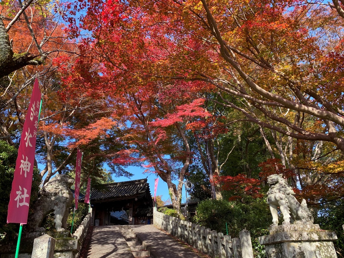 また、参道や境内を彩る鮮やかなモミジの紅葉も見事。