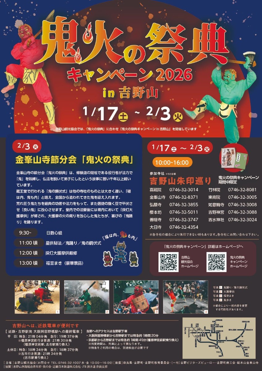 2月3日(火)に行われる金峯山寺節分会の『鬼火の祭典』に合わせ、「鬼火の祭典キャンペーン2026 in 吉野山」を開催。
