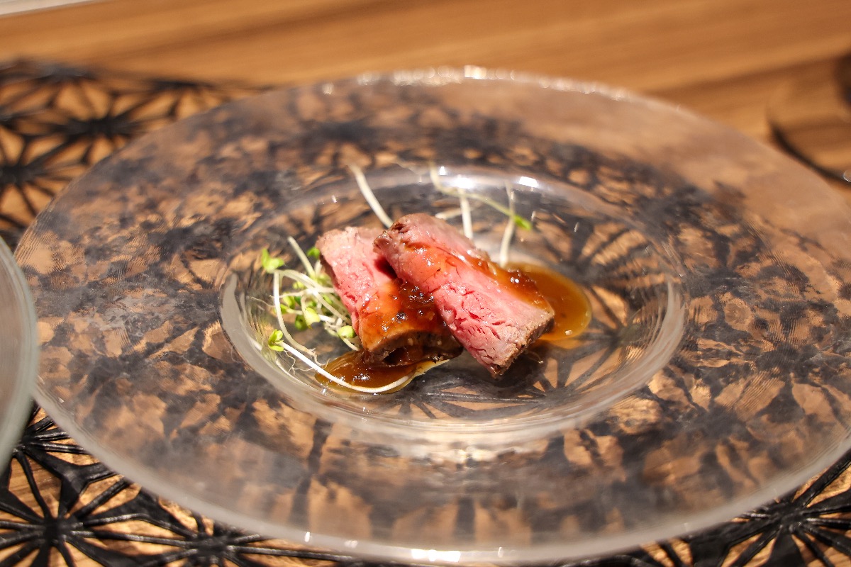 その後は、焼き野菜からメインの和牛へと流れるように展開。