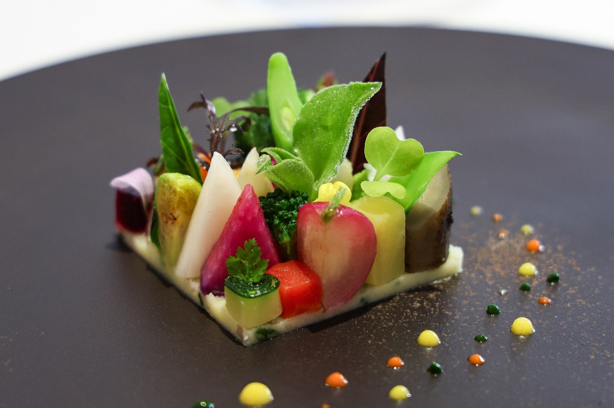 一口ごとに異なる香りと食感が現れ、食べ進めるほどに「野菜とは何か」を問いかけられる一皿。