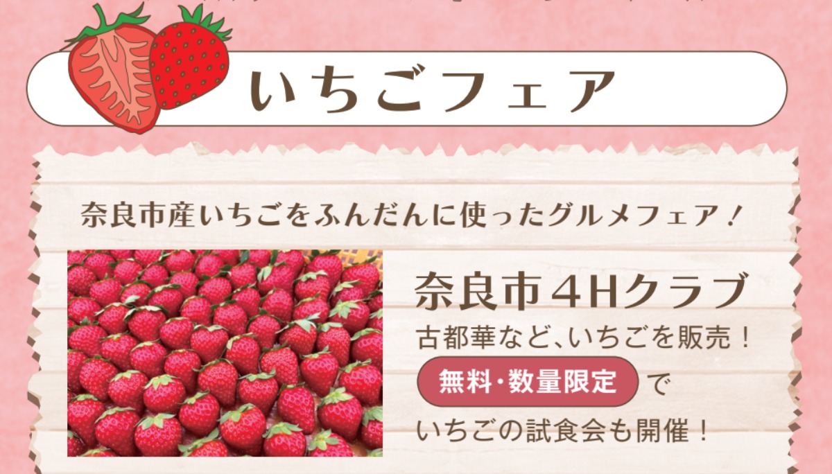 【奈良市】出張直売所やいちごフェアを開催!3月8日(日)は、ならファミリーで美味しいを発見しよう!