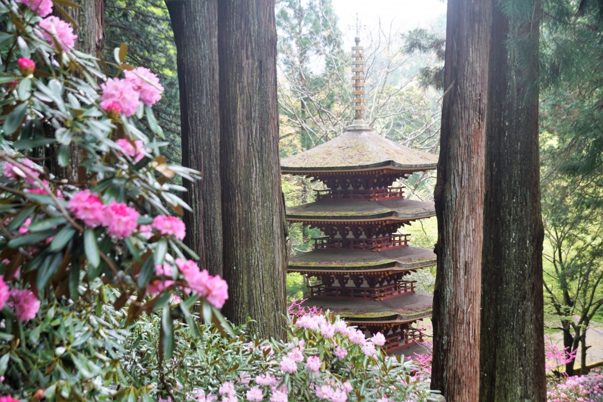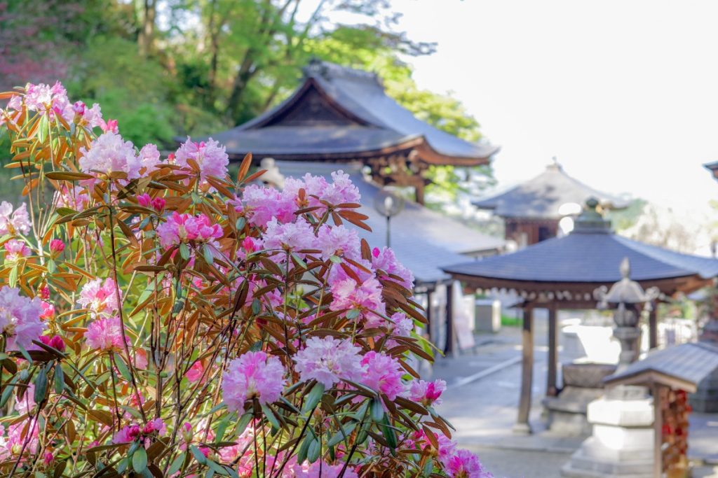 咲き始めてから散るまでに色を変えるシャクナゲを眺めながら境内をゆっくり散策してみよう。