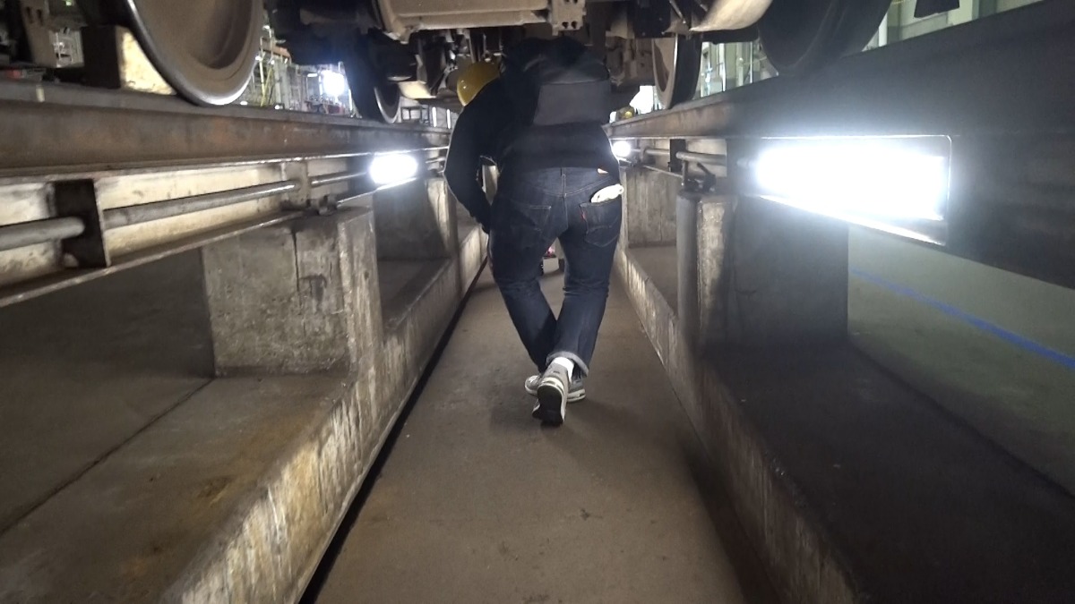 「床下ピット探検隊」では普段、点検、整備されている方と同じ目線で車両の下に入ることができた。