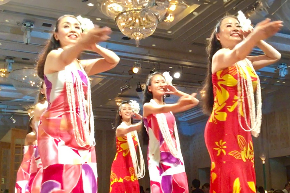 会場を華やかに盛り上げるフラダンスショーを開催、体験レッスンもあり。