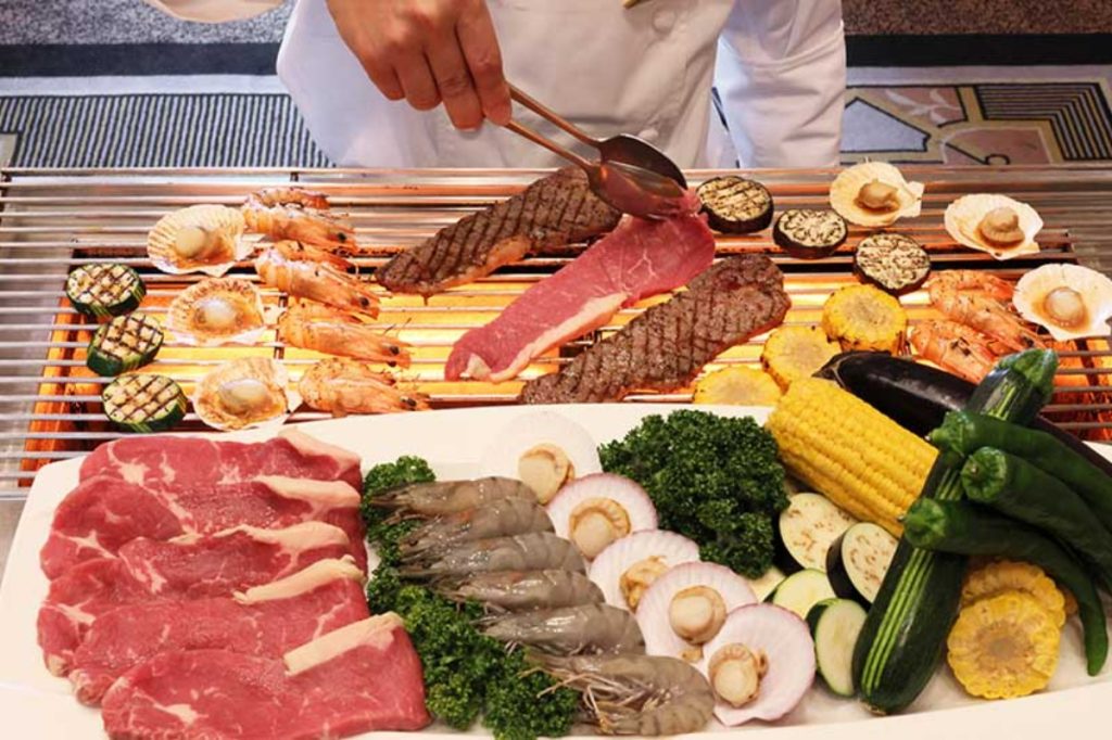 黒毛和牛とシーフードの網焼き/天ぷら/クレープ