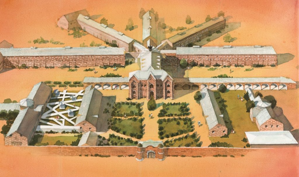 元収容棟は、ハビランド・システムと呼ばれた建築が取り入れられ、看守が立つ監視所を全体の中心に据え、複数の収容棟が放射状に伸びる、今⽇に至る⽇本の「近代監獄」を象徴する収容棟だ。