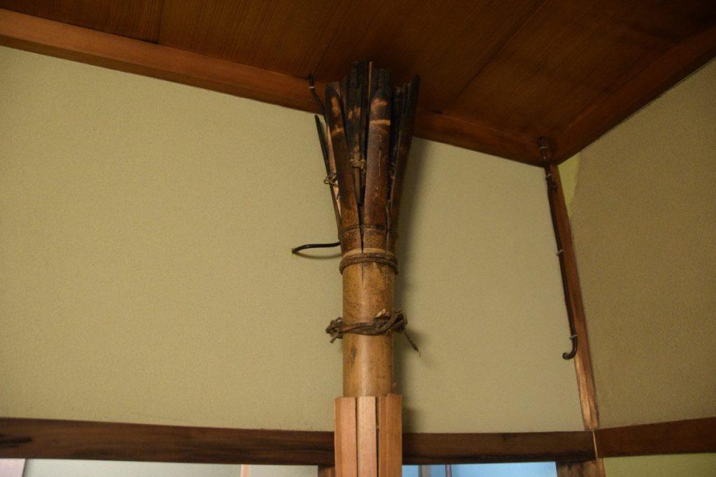 右の床柱をよくよく見てみると何やらほうきのような物が。