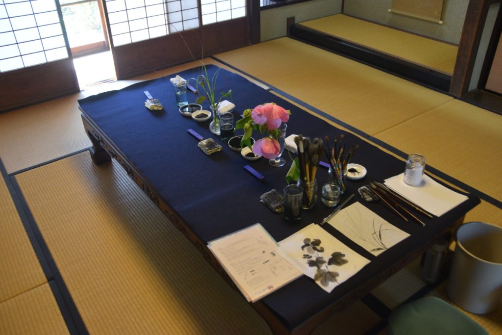 今回訪れた際にも水墨画、おはぎづくりの体験が行われていた。