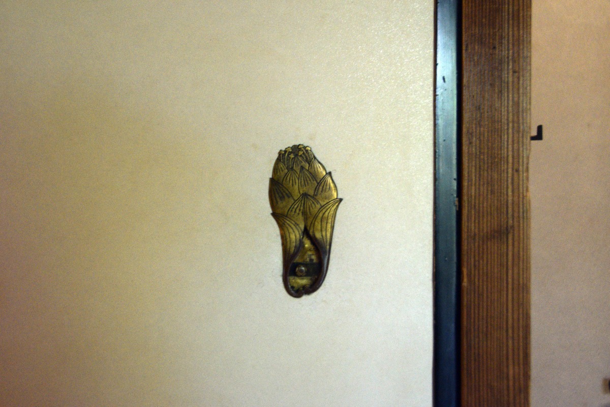 六帖の間のふすまの引手を見てみると華っぽいものが!