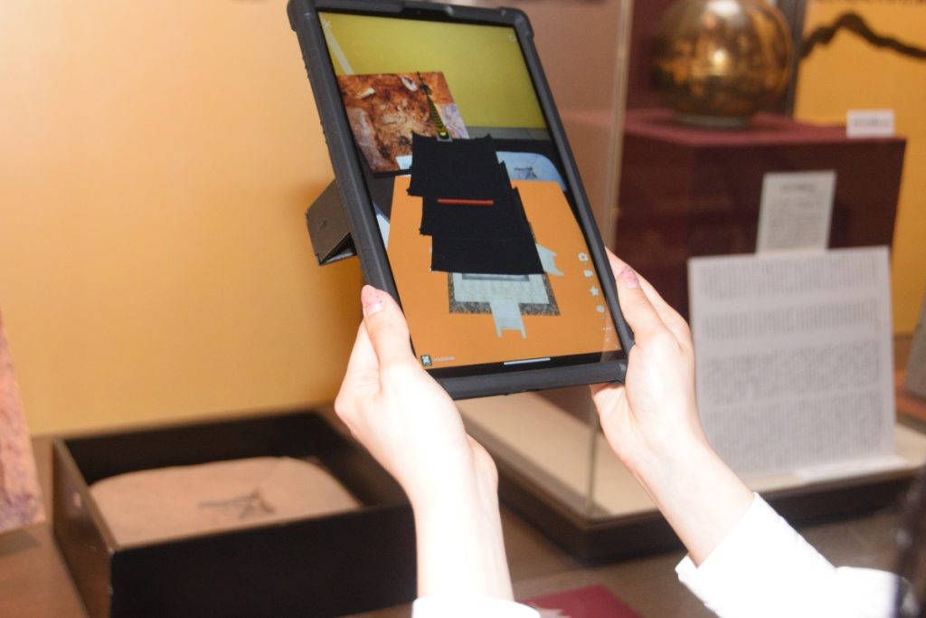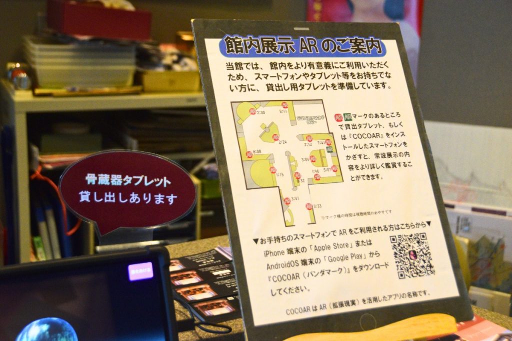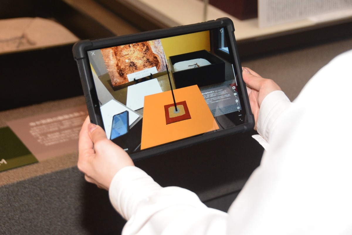 二上山博物館では、ARを自身のスマホでも楽しめる他、タブレットの貸し出しを行っている。