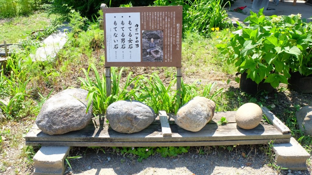 般若寺本性房の力石とは1331年、般若寺の僧が元弘の乱の際に後醍醐帝の戦勝祈願を記した巻数を持参して笠置山に馳せ参じ、後醍醐帝に加勢し笠置山山上から大岩を六波羅勢(鎌倉幕府軍)へ投げつけ大活躍した。